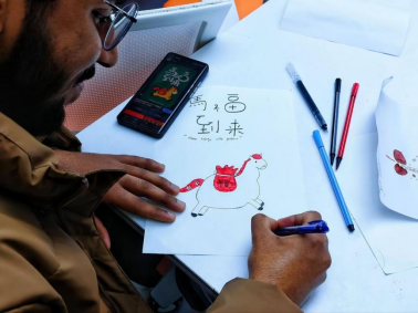 核心环节里,多元展区成为全场焦点,协会精心筹备的五类艺术化可视化作品有序陈列。器官捐献主题海报聚焦人文关怀,以温暖画面与精练文字传递生命大爱;疾病与器官艺术化可视化作品、医学生原创红蓝铅笔组织切片图、医学常识可视化作品及创意医学插画同步展出,全方位展现医学与艺术交融的创作成果。各展区讲解员深入解读作品的创作思路与内涵,中外学生驻足探讨,在专业分享与文化碰撞中深化认知。随后,全体参与者对照展区艺术作品近距离观摩人体器官实物标本,在理论可视化与实物观察的结合中,切实提升医学实践能力,夯实专业认知基础;活动尾声的“马年绘画接龙”创意互动,让中外学子在协作创作、分享理念、书写祝福的过程中,为活动定格温馨瞬间。