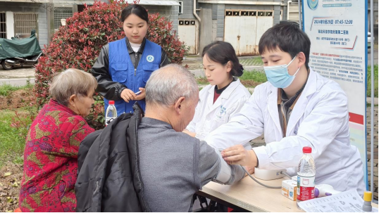 活动当天,师生们早早抵达现场,在负责人统筹下迅速分为健康检测、科普宣讲、互动体验、秩序引导四个小组,分工协作开展服务。在健康检测区,志愿者协助附属二医院医生为居民免费测量血压、血糖,详细记录检测数据,针对异常指标耐心讲解注意事项,提供饮食调理、规范用药等个性化建议。科普宣讲区通过“健康知识真假判断”小游戏,生动普及春季传染病预防、科学养生等常识,发放健康手册,让居民在互动中提升健康素养。互动体验区专为小朋友设计垃圾分类、卫生常识闯关等趣味活动,在欢乐氛围中传递卫生习惯养成要点。