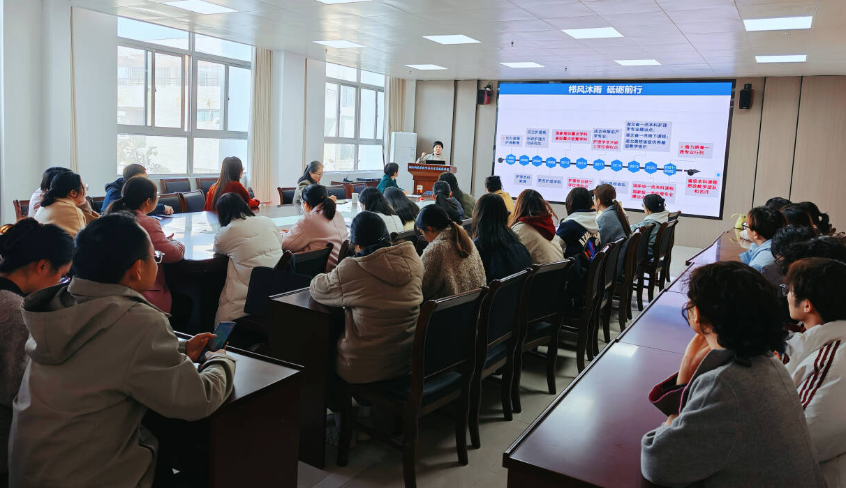 讲座在健康学院领导的简短致辞中拉开帷幕。在当前高等教育内涵式发展的背景下,课程建设已成为提升人才培养质量的核心抓手,而科研创新则是推动学科发展的关键动力。胡慧院长作为护理学专业认证专家,在课程建设与科研融合方面具有丰富的理论积淀与实践经验,她的分享将为我院护理学科发展提供宝贵借鉴。